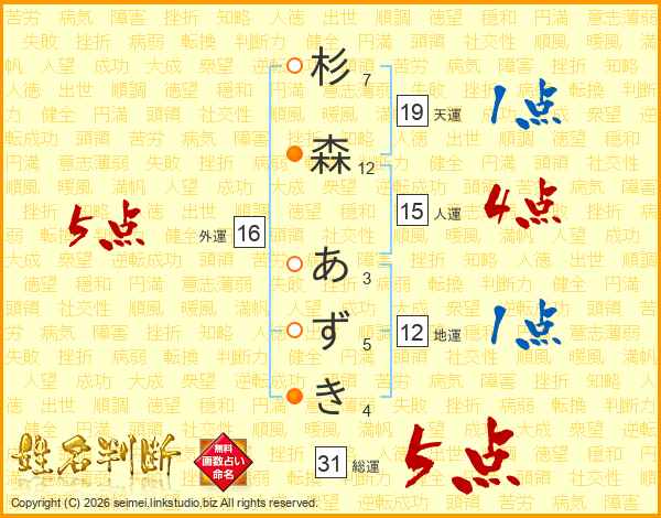 杉森あずきさんの外運は16画の5点!