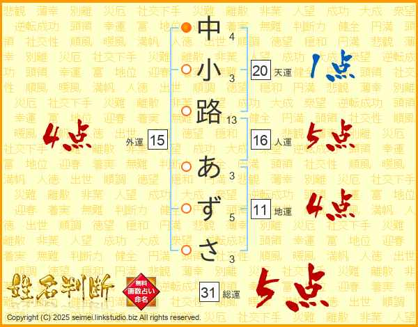 中小路あずささんの総運は31画の5点!