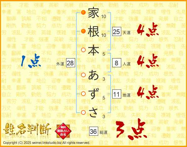 家根本あずささんの天運は25画の4点!