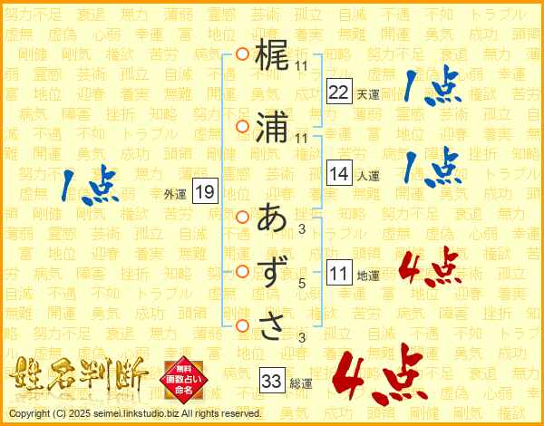 梶(11画)浦(11画) あ(3画)ず(5画)さ(3画)