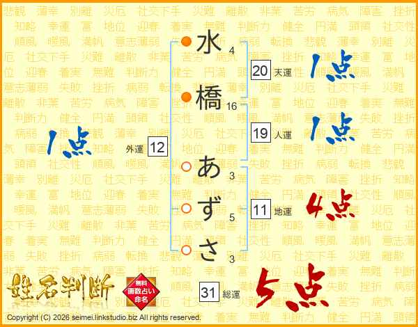 水橋あずささんの総運は31画の5点!