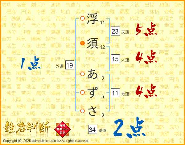 浮(11画)須(12画) あ(3画)ず(5画)さ(3画)