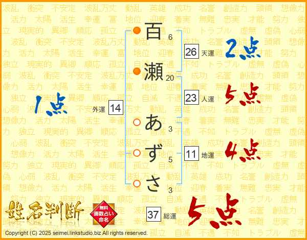 百(6画)瀬(20画) あ(3画)ず(5画)さ(3画)