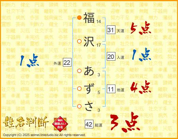 福(14画)沢(17画) あ(3画)ず(5画)さ(3画)