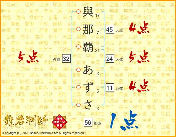 與那覇あずささんの天運は45画の4点!