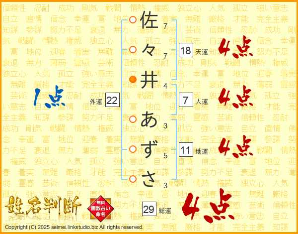 佐(7画)々(7画)井(4画) あ(3画)ず(5画)さ(3画)