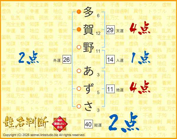 多賀野あずささんの総運は40画の2点!