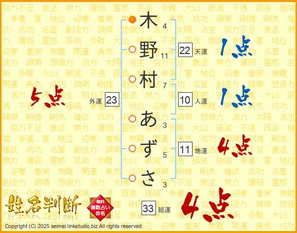木野村あずささんの総運は33画の4点