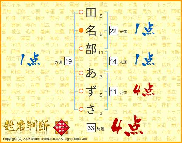 田(5画)名(6画)部(11画) あ(3画)ず(5画)さ(3画)
