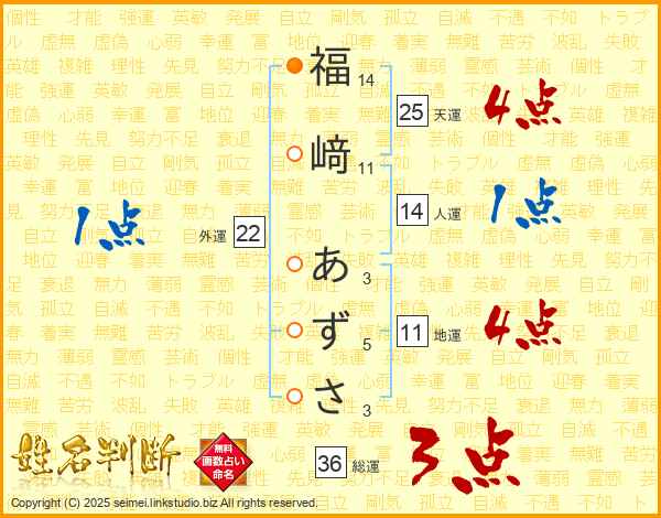 福﨑あずささんの地運は11画の4点!