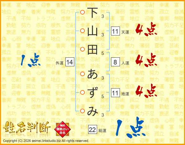 下山田あずみさんの天運は11画の4点!