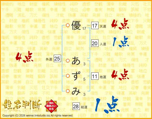 優あずみさんの天運は17画の4点!