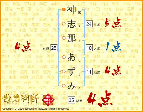 神(10画)志(7画)那(7画) あ(3画)ず(5画)み(3画)