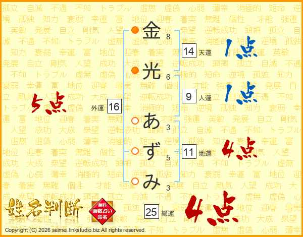 金光あずみさんの総運は25画の4点!
