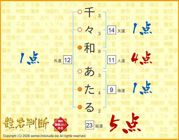 千々和あたるさんの総運は23画の5点!