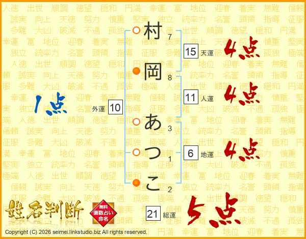 村岡あつこさんの人運は11画の4点!