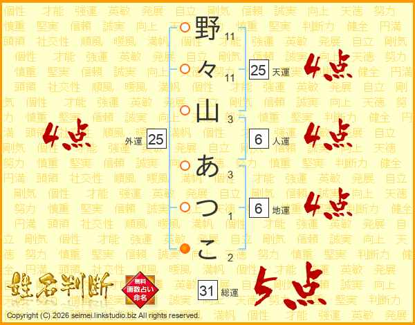 野々山あつこさんの総運は31画の5点!