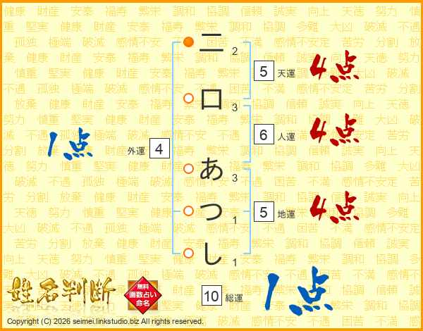 二口あつしさんの総運は10画の1点!
