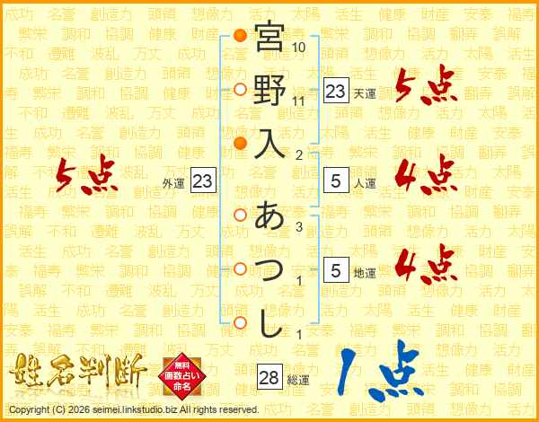宮野入あつしさんの天運は23画の5点!