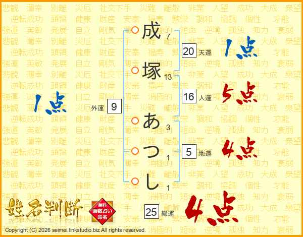 成塚あつしさんの総運は25画の4点!