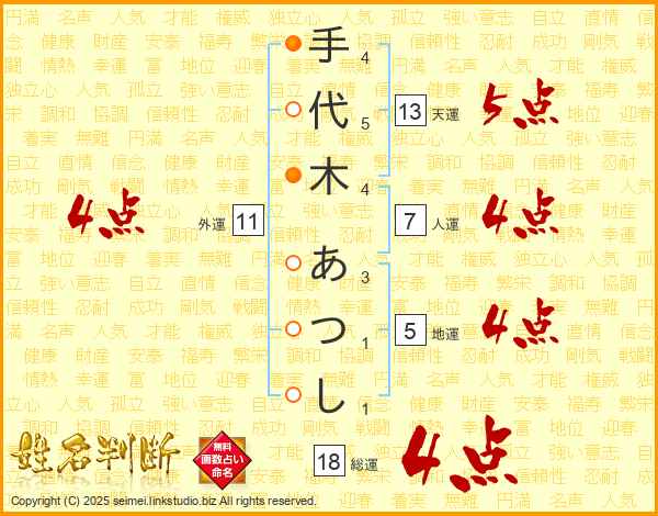 手代木あつしさんの総運は18画の4点!