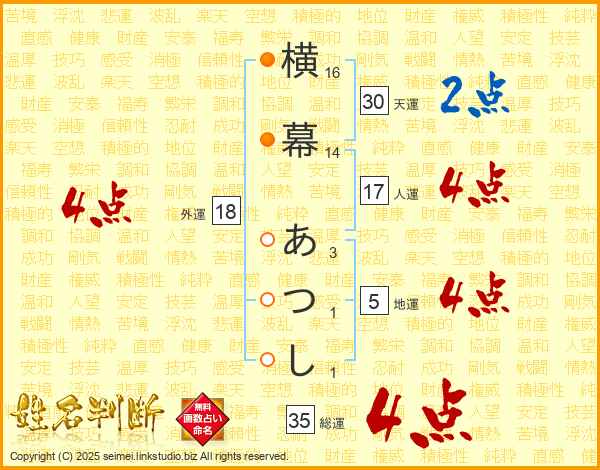 横幕あつしさんの総運は35画の4点!