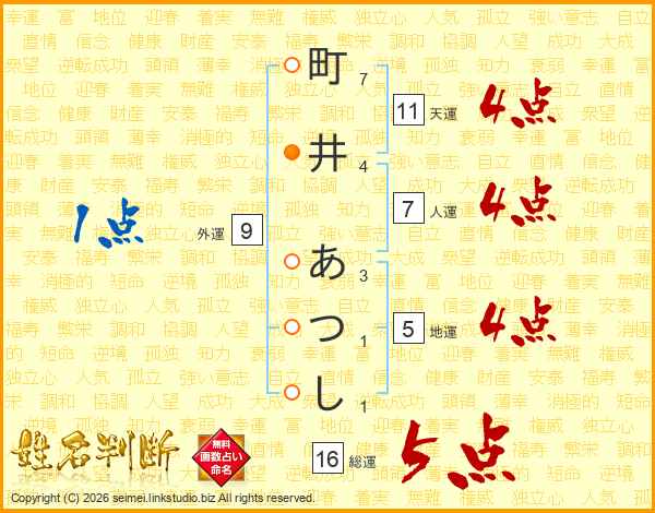 町(7画)井(4画) あ(3画)つ(1画)し(1画)