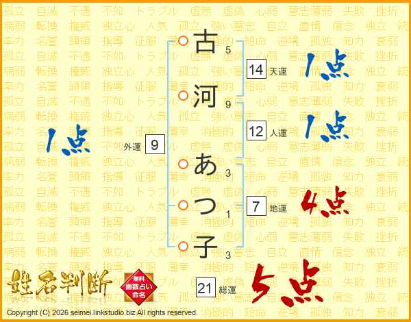古河あつ子さんの総運は21画の5点!