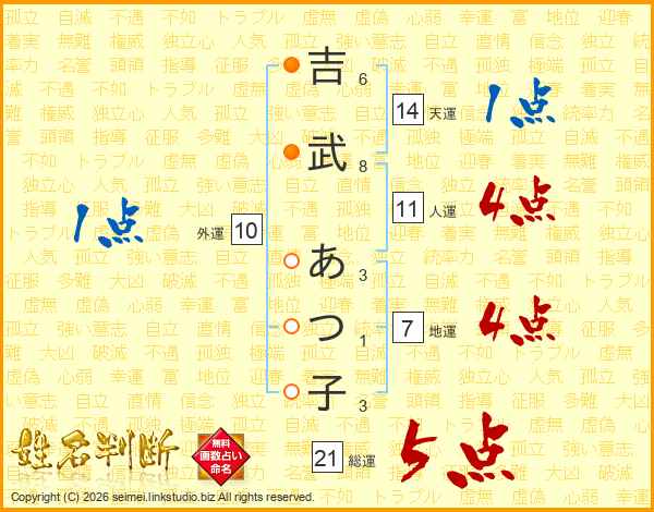 吉武あつ子さんの総運は21画の5点!