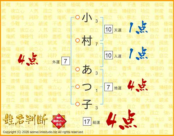 小(3画)村(7画) あ(3画)つ(1画)子(3画)