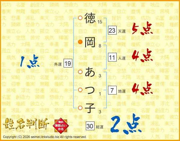 徳岡あつ子さんの総運は30画の2点!