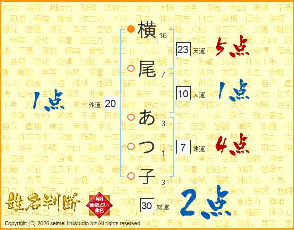 横尾あつ子さんの総運は30画の2点!