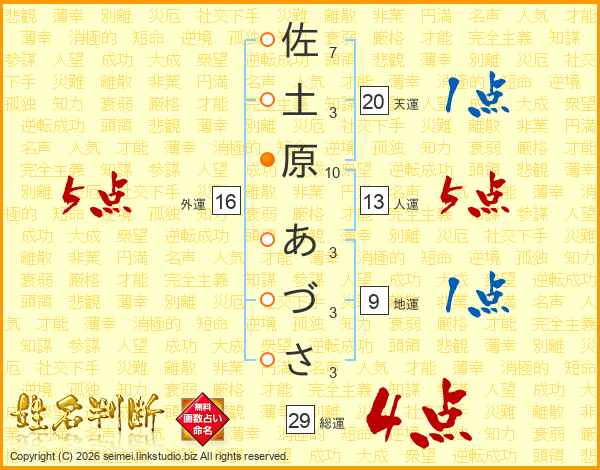 佐土原あづささんの総運は29画の4点!
