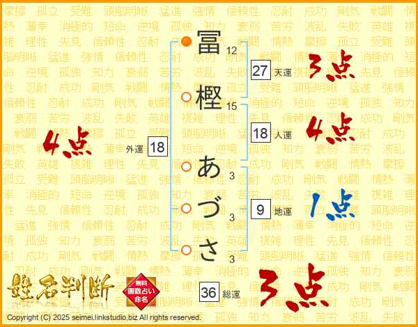冨(12画)樫(15画) あ(3画)づ(3画)さ(3画)