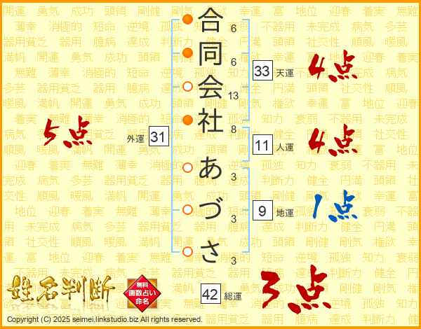 合同会社あづささんの天運は33画の4点!
