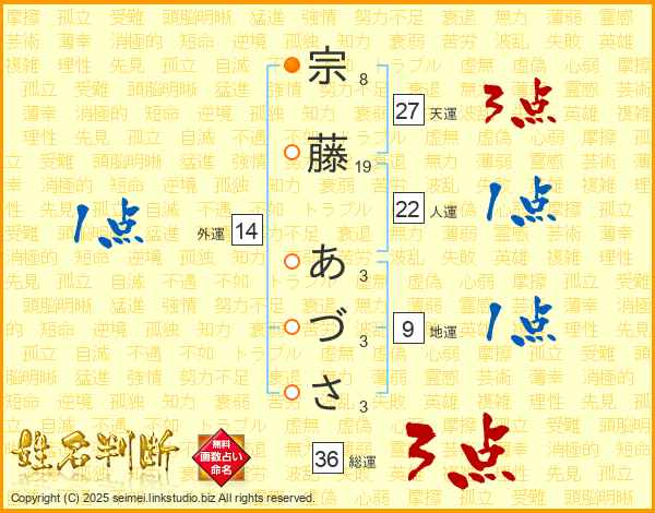 宗藤あづささんの総運は36画の3点!