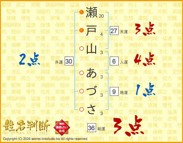 瀬戸山あづささんの総運は36画の3点!