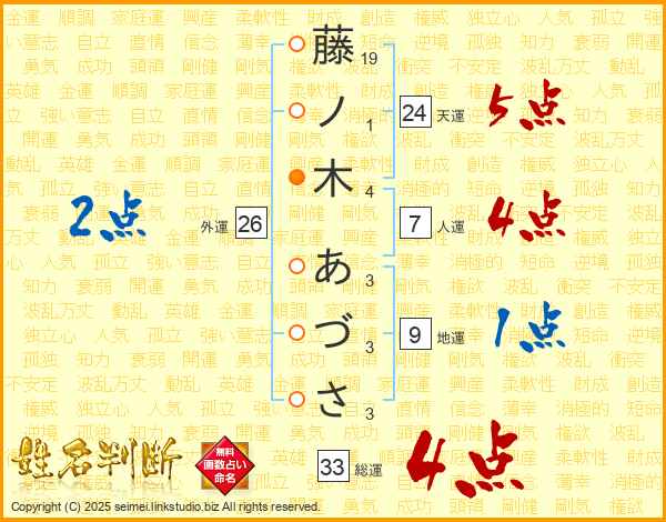 藤ノ木あづささんの総運は33画の4点!