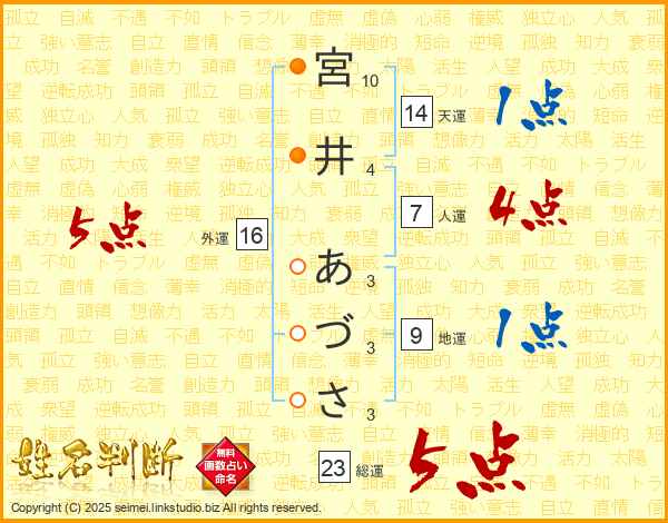 宮井あづささんの天運は14画の1点!