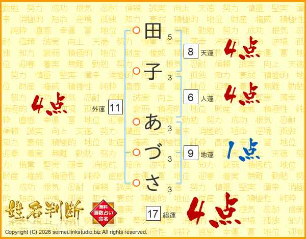 田(5画)子(3画) あ(3画)づ(3画)さ(3画)
