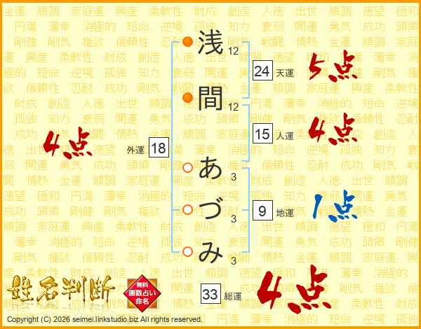 浅(12画)間(12画) あ(3画)づ(3画)み(3画)