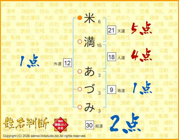 米満あづみさんの総運は30画の2点!