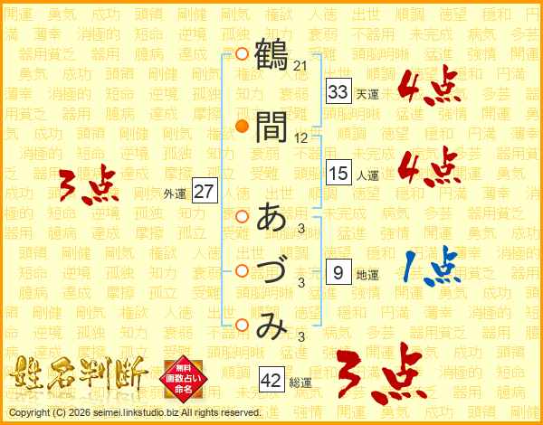 鶴間あづみさんの天運は33画の4点!
