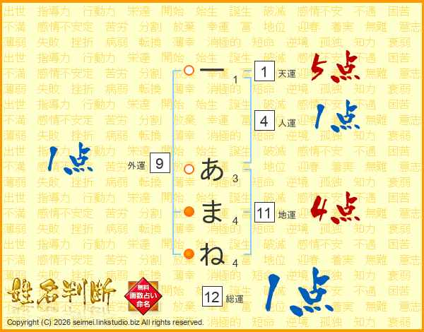 一あまねさんの総運は12画の1点!