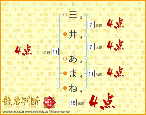 三井あまねさんの天運は7画の4点!