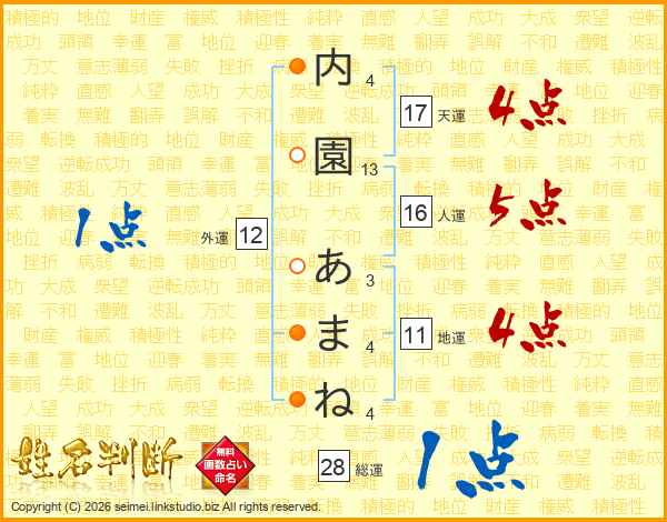 内園あまねさんの天運は17画の4点!