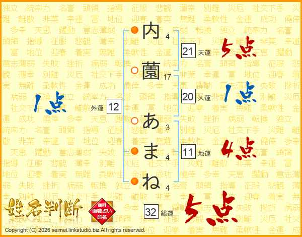 内薗あまねさんの総運は32画の5点!