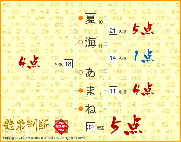 夏海あまねさんの外運は18画の4点!
