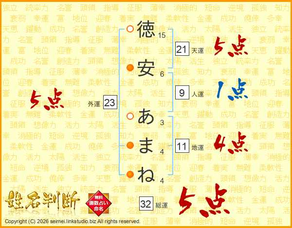 徳安あまねさんの総運は32画の5点!