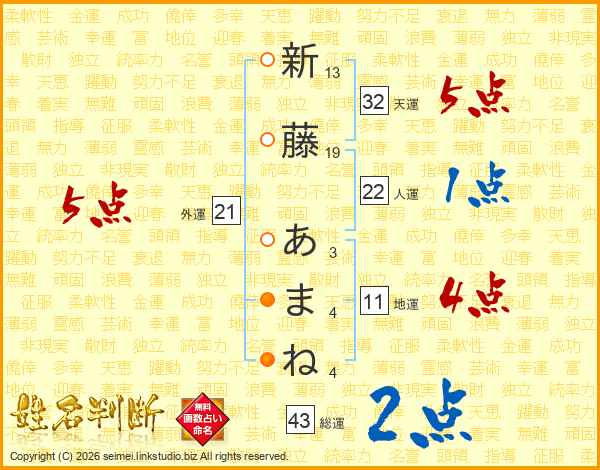 新藤あまねさんの天運は32画の5点!
